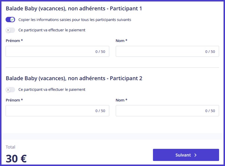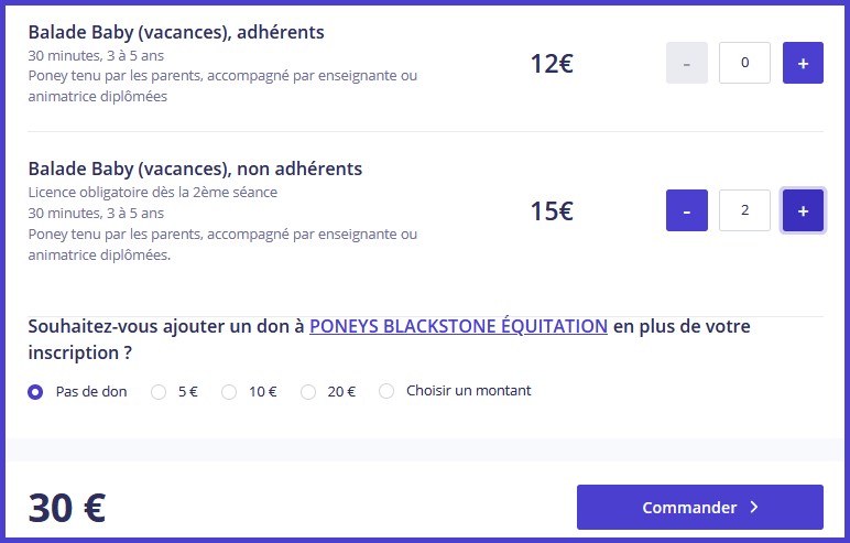 Exemple : achat de 2 balades baby